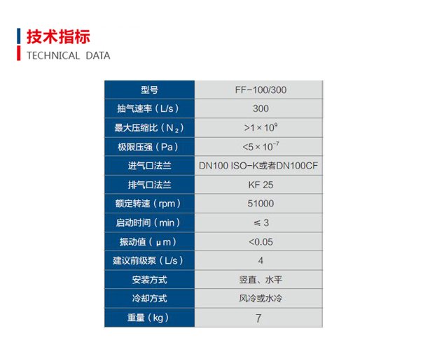 有FF-100/300脂润滑分子泵的详细技术参数吗?