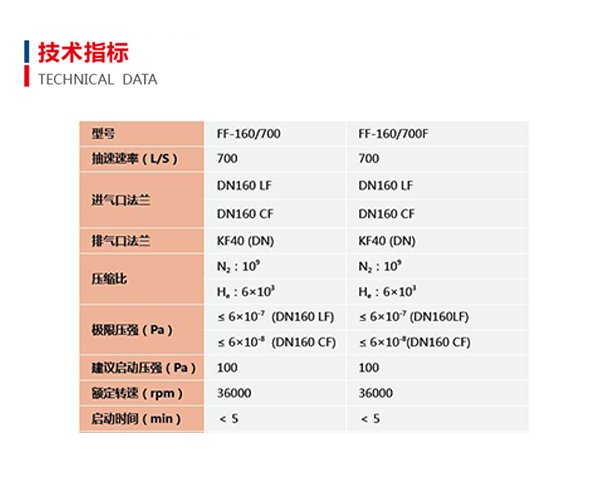 有FF-160/700脂润滑分子泵的详细技术参数吗?