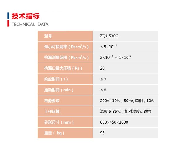 有ZQJ-530G型氦质谱检漏仪的详细技术参数吗?